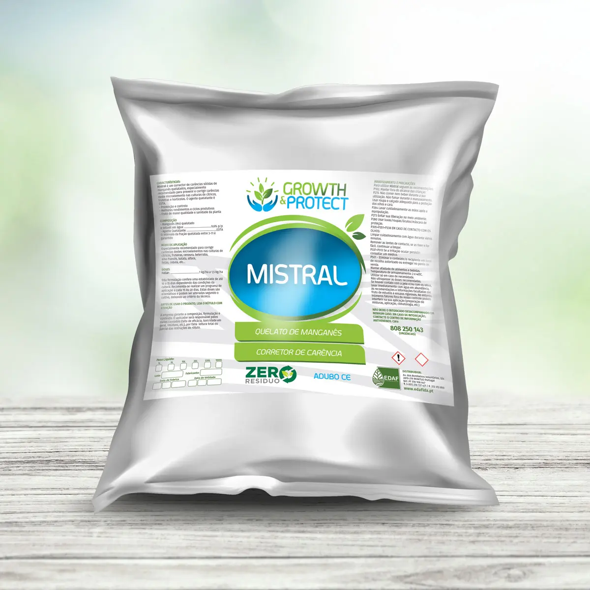 Mistral é um corrector de carências sólidas de manganês quelatados, especialmente recomendado para prevenir e corrigir carências deste microelemento nas culturas de cítricos, fruteiras e hortícolas. O agente quelatante é EDTA.