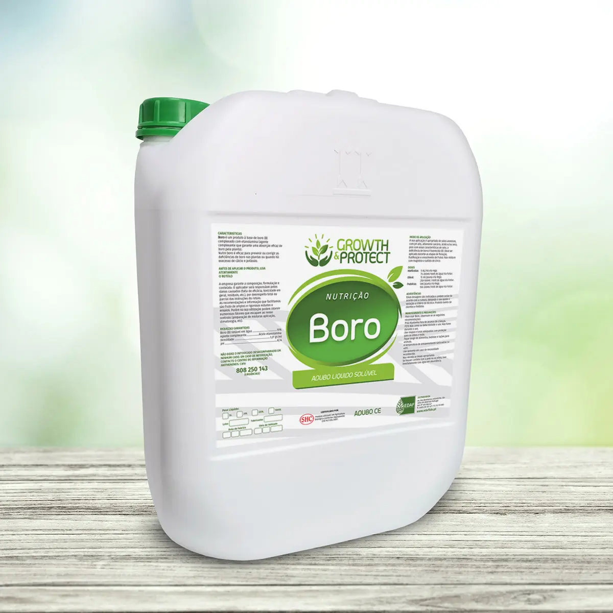 Nutre Boro é um produto à base de boro (B) complexado com etanolamina (agente complexante que garante uma absorção eficaz de boro pela planta).